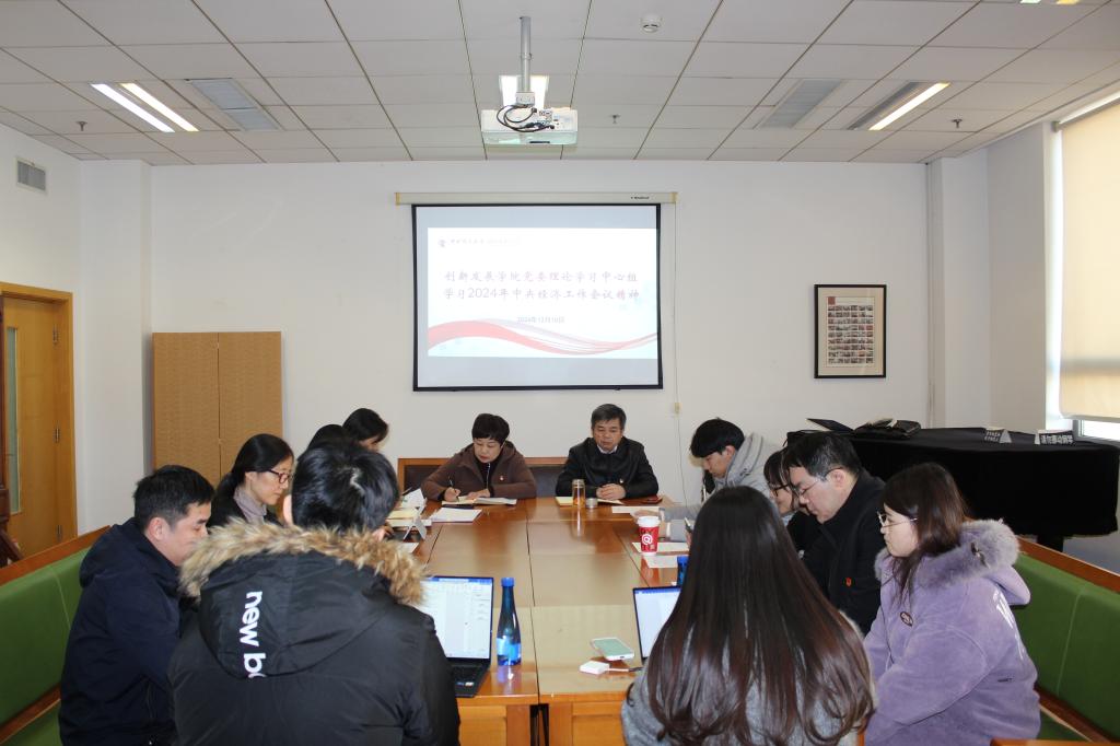 创新发展公司党委理论学习中心组专题学习2024年中央经济工作会议精神 2024年12月18日,创新发展公司党委理论学习中心组在学术会堂712专题学习2024年中央经济工作会议精神。公司党委常务副书记王颖主持会议,公司党委理论学习中心组成员参加学习。集体学习王颖书记指出,中央经济工作会议12月11日至12日在北京举行,习近平总书记出席并发表重要讲话,总结2024年经济工作,分析当前经济形势,部署2025年经济工作。李强作总结讲话,围绕贯彻落实习近平总书记重要讲话精神,就做好明年经济工作提出具...