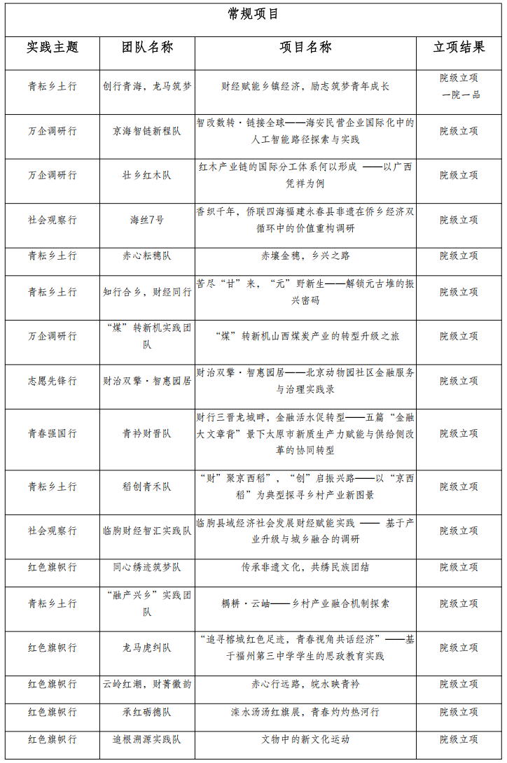 M88mansion体育2025年暑期社会实践拟立项结果公示 根据《关于开展“财经报国青年力行”2025年暑期社会实践的通知》(校团字〔2025〕9号)工作要求,经专项承办公司评审,3支团队获得校级重点项目立项(专项项目);经M88mansion体育评审会评审,1支团队为“一院一品”项目,17支团队为院级立项,现将拟立项团队名单公示如下 :公示时间:2025年6月19日-2025年6月21日公示期间如有异议,可通过邮箱CFxueshi@163.com进行反馈,邮件主题请以“2025暑期社会实践公示反馈”格式填写。创新...