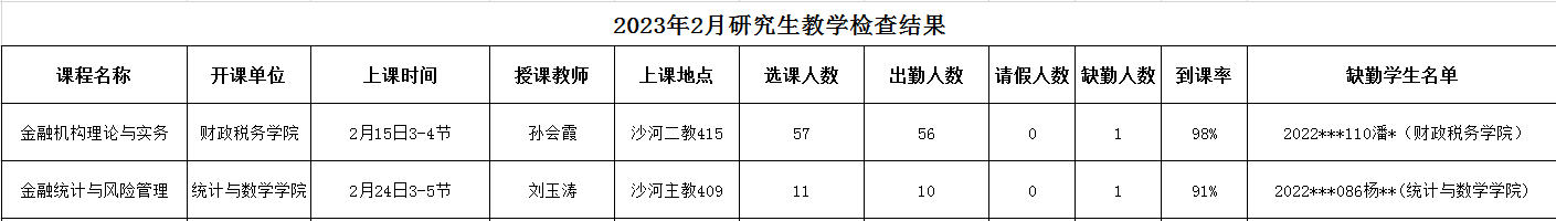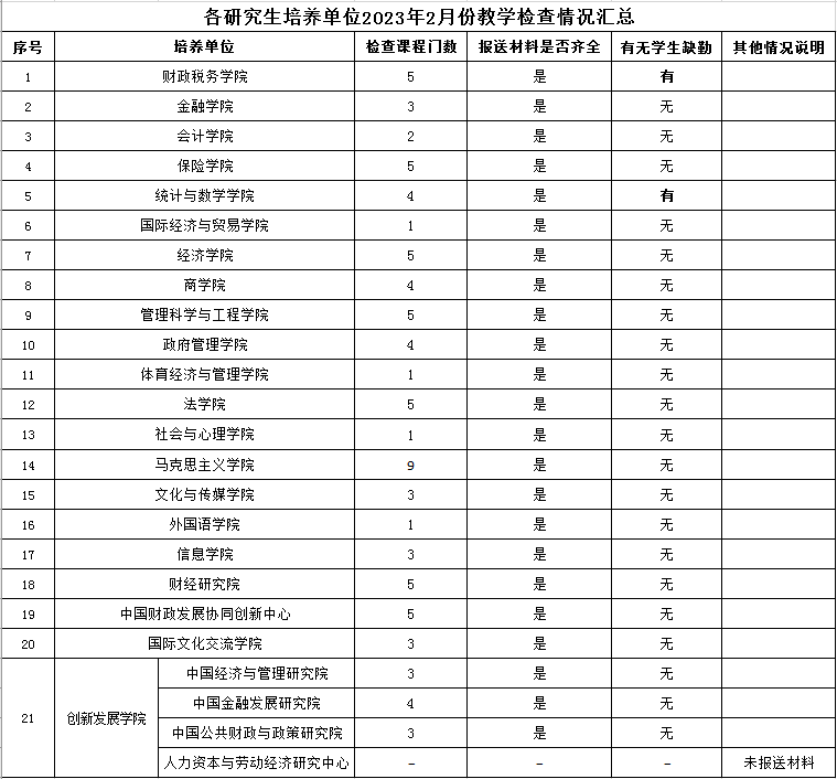 现将2023年2月份各单位上报教学检查及缺勤情况进行通报: