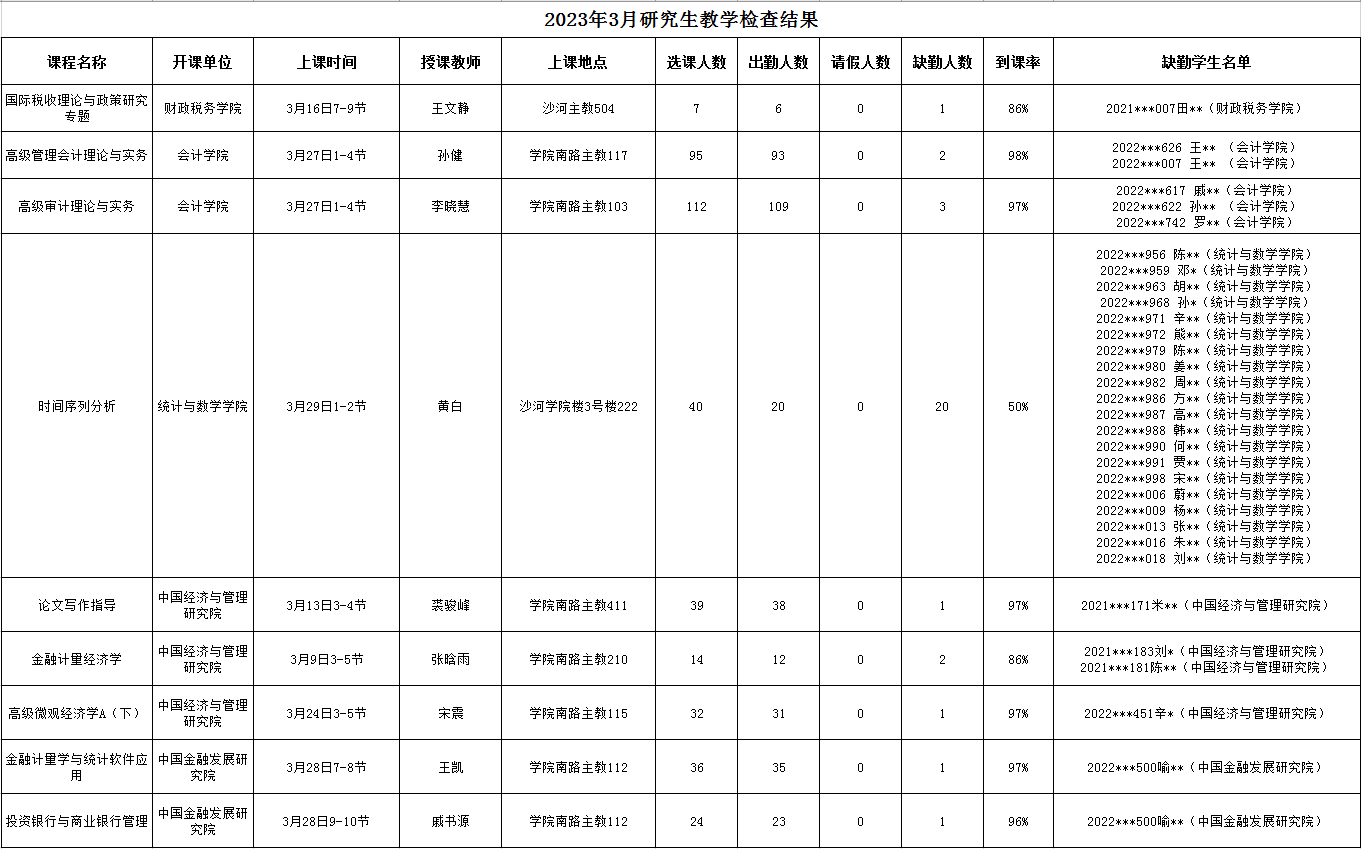 现将2023年3月份各单位上报教学检查及缺勤情况进行通报: