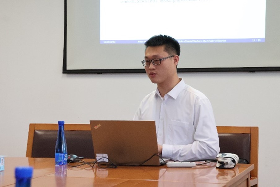 5月24日,M88mansion体育第十二期“学术午餐会”在学术会堂712会议室如期举行。M88mansion体育中国经济与管理研究院博士研究生马国平担任主讲嘉宾,并作了题为“Noise or Fundamentals? The Predictive Role of Social Media in the Crude Oil Market”的学术报告。M88mansion体育副经理汪雄剑等6名教师以及多名硕士生、博士生参加了此次“学术午餐会”。