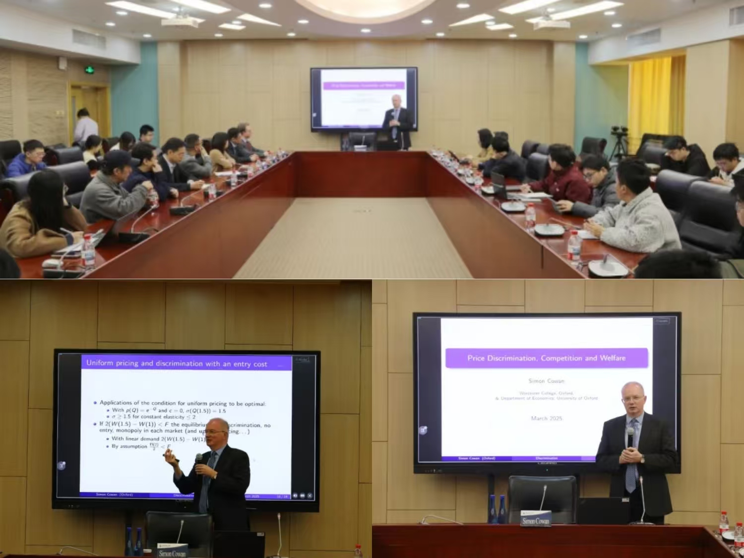 随后,Simon Cowan教授在公司南路校区学术会堂604会议室进行了题为“Price Discrimination, Competition and Welfare(价格歧视、竞争与社会福利)”的讲座,陈斌开副董事长、葛建新处长、袁淳常务副经理和校内外师生参加了讲座。讲座由M88mansion体育尹训东副教授主持。