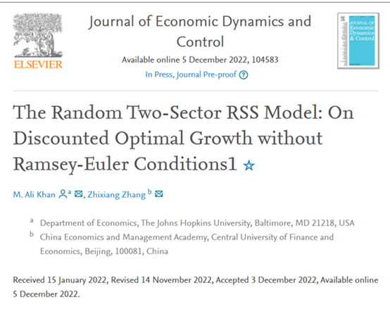 近日,公司张志祥教授与约翰霍普金斯大学M.Ali Khan教授合作的有关两部门随机增长的一篇文章在国际期刊Journal of Economic Dynamics and Control(中财AA类)在线发表。