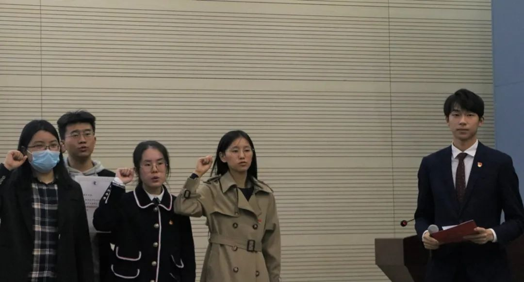 党员先锋岗代表王子逸、温迪、赵心瑜发言