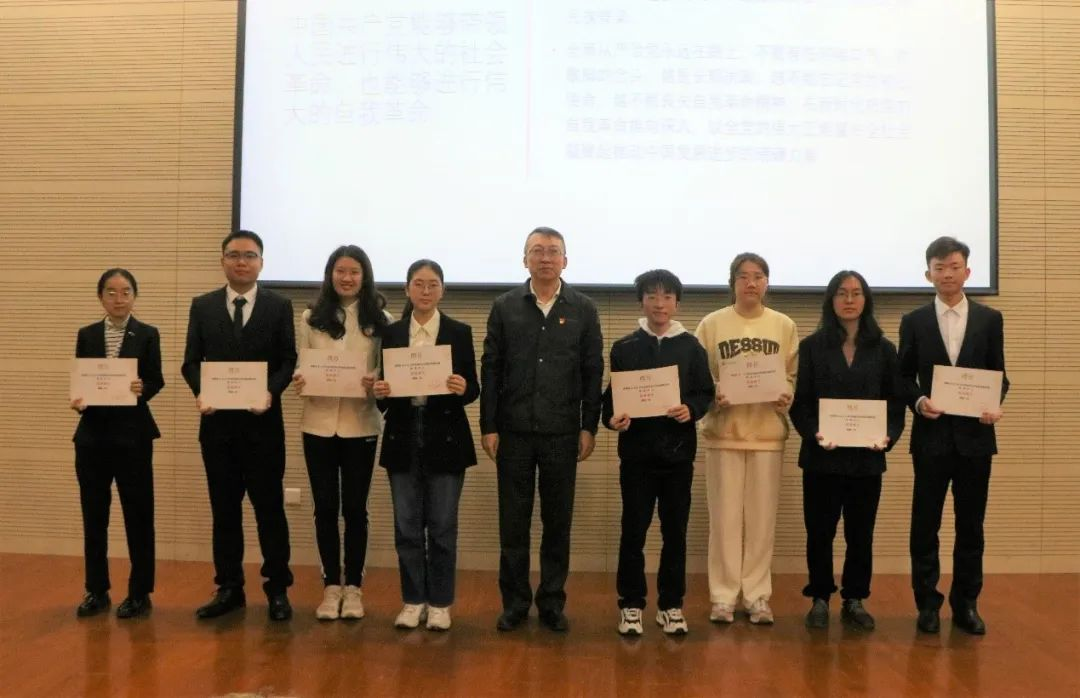 首先,文雅老师带着现场师生共同学习党的二十大精神,深度解读报告中的“自我革命”的内涵。文老师从中国历史中“革命”一词意义的变化、中西方对“革命”见解的区别讲起,阐明了“革命”的多重含义,指出新语境下的“革命”是面向未来、饱含进步意义的改造。而自我革命,是中国共产党“刀刃向内”的一次次进步,是经过百年奋斗特别是党的十八大以来新的实践中,得出的跳出历史周期率的第二个答案,与第一个答案“人民监督”具有内在一致性,两者是相辅相成、相互支撑的辩证统一体。勇于自我革命,是中国共产党最鲜明的品格,也是中国共产党最大的优势,蕴含着深刻的历史逻辑、现实逻辑和理论逻辑。中国共产党能够带领人民进行伟大的社会革命,也能够进行自我革命。文雅老师呼吁大家,树立远大理想、勇担时代责任、练就过硬本领、锤炼品德修为,让青春在全面建设社会主义现代化国家的火热实践中绽放绚丽之花!