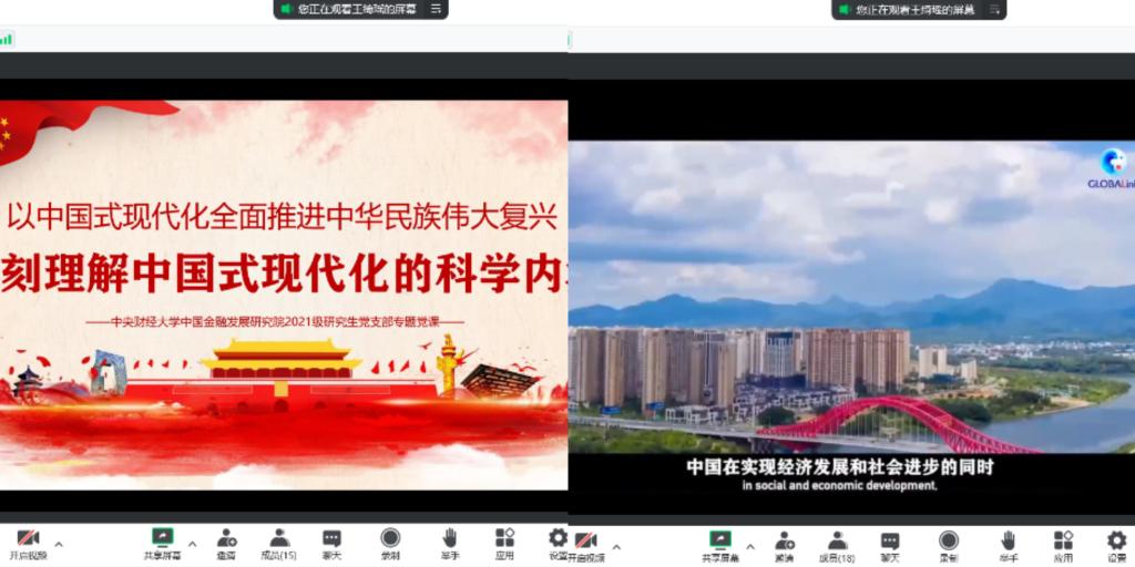 蓝图绘就风正劲,扬帆破浪奋进时。以学习贯彻党的二十大精神为主线、以领悟中国式现代化内涵为支点、以为人民做实事为行动,中国金融发展研究院2021级研究生党支部将家国情怀与青年个人发展、校园文明环境相关联,迅速展开学党课、悟情怀、做实事活动,探寻青年如何“向世界讲述中国故事”,畅谈青春热血何以“融入时代洪流”。站在新的历史节点,我们要开启“奋斗加速度”,踔厉奋发、勇毅前行,为全面建成社会主义现代化强国、实现第二个百年奋斗目标贡献青春智慧和力量。