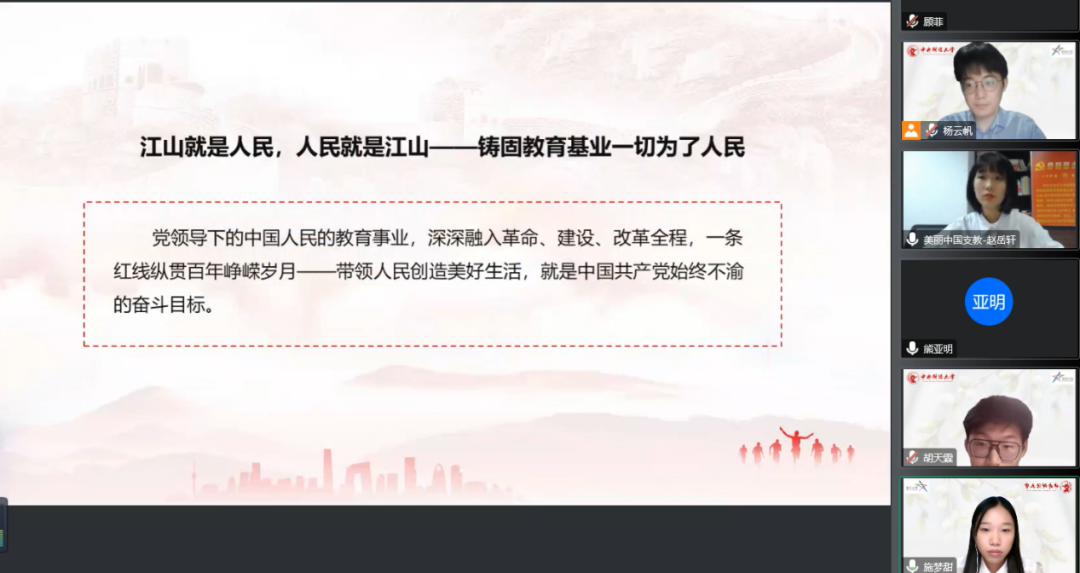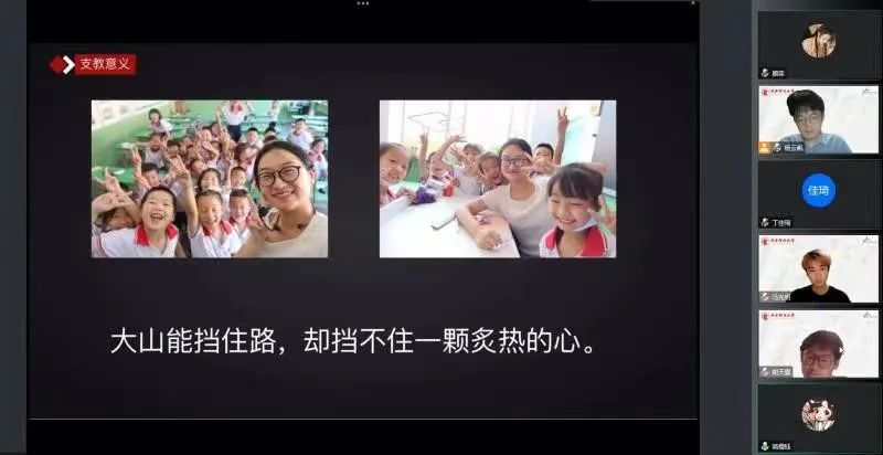 为进一步学习贯彻习近平新时代中国特色社会主义思想,扎实推进教育部“青春献礼二十大,强国有我新征程”迎接学习宣传党的二十大主题宣传教育活动和北京市教育系统“请党放心、强国有我”主题教育活动,9月29日,MS88官方网站中经管研究生第一党支部和北京立德未来助学公益基金会党支部在线上联合举办“聚焦教育强国领域”中财大人支教经历分享,以期认识农村教育,关注乡村振兴,助力青年选择,引导中财大学子自觉将“小我”融入“大我”,在祖国最需要的地方绽放青春绚丽之花。