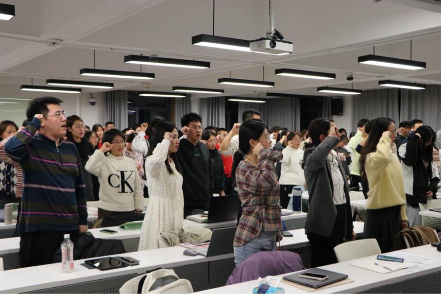 “书记第一课”中李汉军老师以《传承红色基因 赓续报国使命》为主题,从建党百年的精神传承、中国共产党的昂扬风貌、中财大“为国而生,与国同行”的红色传承等方面进行讲述,鼓励同学积极向党组织靠拢。