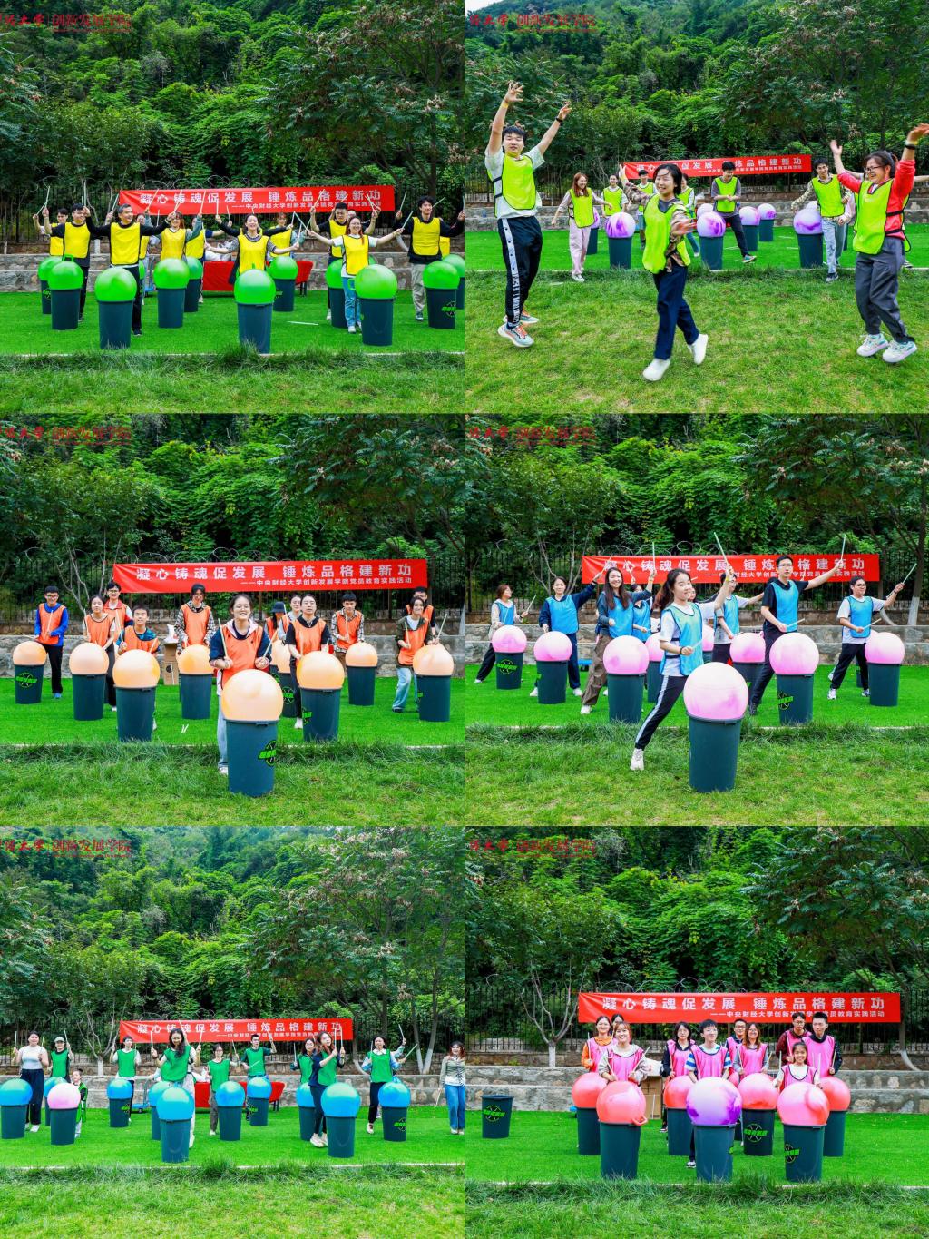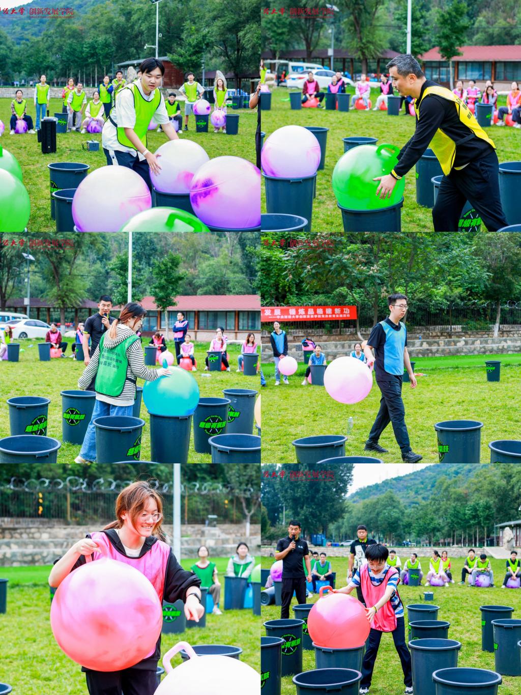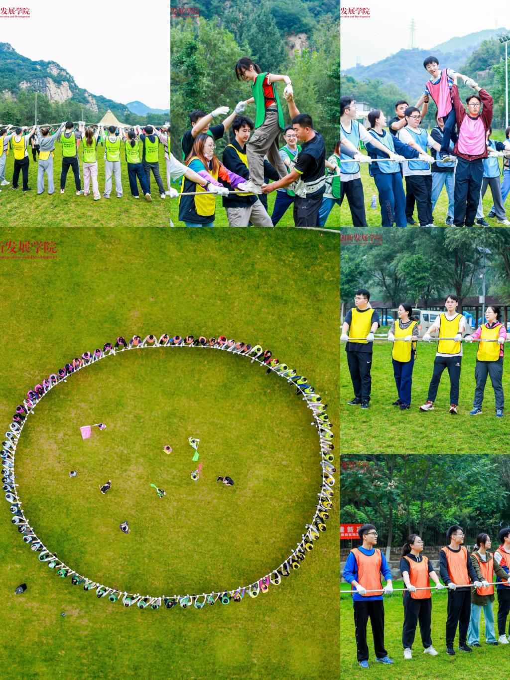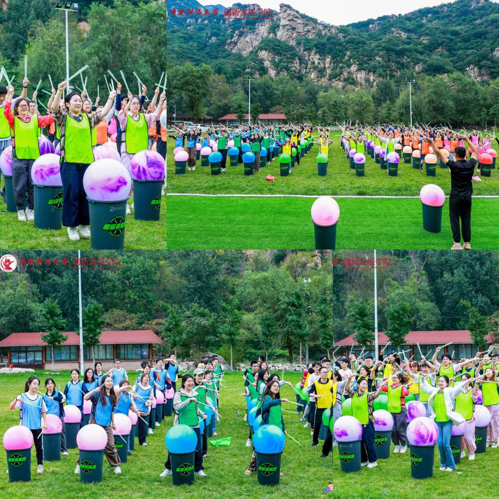 接下来的拓展项目同样激动人心。跟随“超级有氧鼓”动感的鼓点,师生们充满活力的舞姿令人赏心悦目;“听歌站位”活动紧张刺激,在对“桶”的争夺中,欢笑声此起彼伏;“团队四子棋”同时考验队员们的脑力和应变能力,汇聚团队的力量争取胜利;“龙行天下”和“众星捧月”活动则再次增进团队合作的默契,此时的队员们有了上午合作的经验,动作完成行云流水。