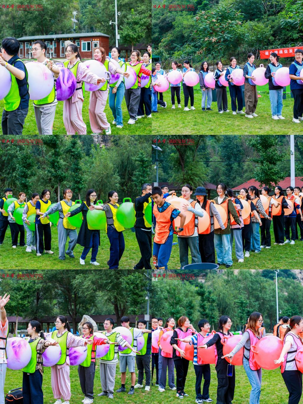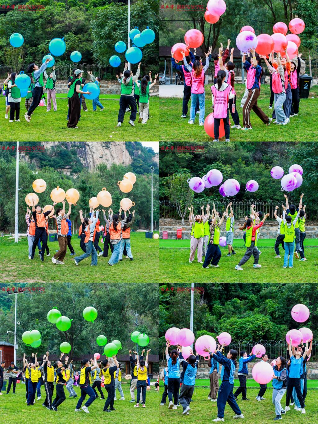 上午九时许,全体师生到达活动地点,绵绵阴雨无法熄灭大家高涨的热情。在公司党委常务副书记王颖老师鼓舞人心的动员之后,妙趣横生的热身破冰活动开始了,师生们共组成六支队伍,每一支队伍都洋溢着勃勃生机与昂扬斗志,分别以“一帆风顺”“好事成双”“三羊开泰”“四季发财”“五福临门”“六六大顺”这些富含吉祥寓意且充满正能量的名字命名,不仅彰显出追求卓越、勇攀高峰的决心与信念,更巧妙地将对祖国繁荣昌盛的深切祝福与对公司未来发展的美好愿景融入其中。
