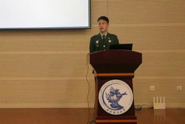 孙黎华同学是团中央西部计划志愿者,也是第一批赴宕昌支教的中财大学子和宕昌临时党支部的一员。在支教期间,他参与直播带货活动,调研旅游、消费产业,全面融入宕昌生活,彰显中财人的情怀和担当。孙黎华同学向大家分享了自己在甘肃宕昌县一中的支教经历。他表示回到自己家乡参与建设家乡是一件非常荣幸的事情。他简述了一年的支教生活,鼓励同学们走进基层、感悟民生,以实际行动参与乡村振兴,在党和国家最需要的地方挥洒青春。