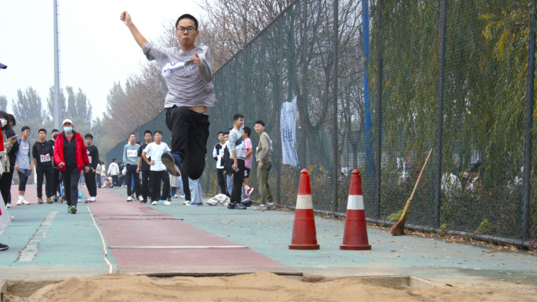 王浩宇、李屹和汝沁泽参加了男子跳远比赛,每一步腾跃,飞扬的不只是汗水,还有青春。