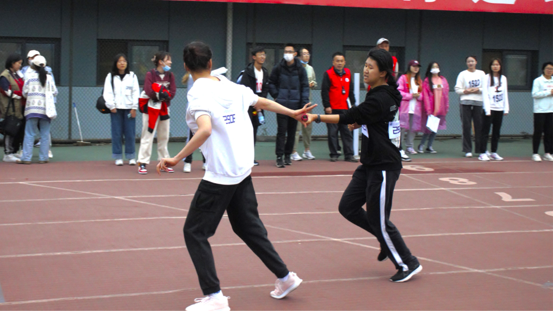 女子、男子200米、4*100米、4*400米接力以及之后的女子800米……竞技项目唤起新生内心的激情。跑道上热烈的欢呼,运动员急促的呼吸,在这运动盛会上,每个人都在努力突破自我,创造奇迹。当然,趣味项目也不会缺席,绑腿跑,旋风跑……欢声笑语中洋溢着青春的色彩,一次次的默契配合,一次次的相视而笑,拉近了我们之间的距离,彰显着合作的乐趣。