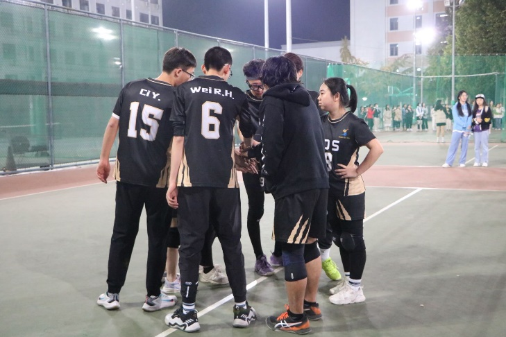 伴随一声哨响,比赛拉开序幕。在场边兴奋的呐喊中,双方队员士气高涨,均快速进入比赛状态,展开激烈的比分争夺,局势紧张胶着。尽管我方开局短暂落后,但凭借默契的配合与稳定的发挥迅速追平比分,而对方实力同样也不容小觑,比赛末段我方出现些许失误,憾负首局。