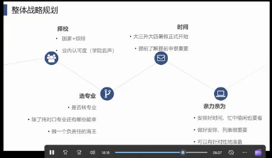 李想(数理经济与数理金融)现就读于新加坡国立大学应用经济学专业。他从同学们的疑问入手,分析了本科阶段的各方面经历对留学申请的影响和帮助。他提醒同学们在保研与留学之间谨慎选择,明确自己的目标公司,提前了解相关信息,并根据重要性排序进行申请准备。