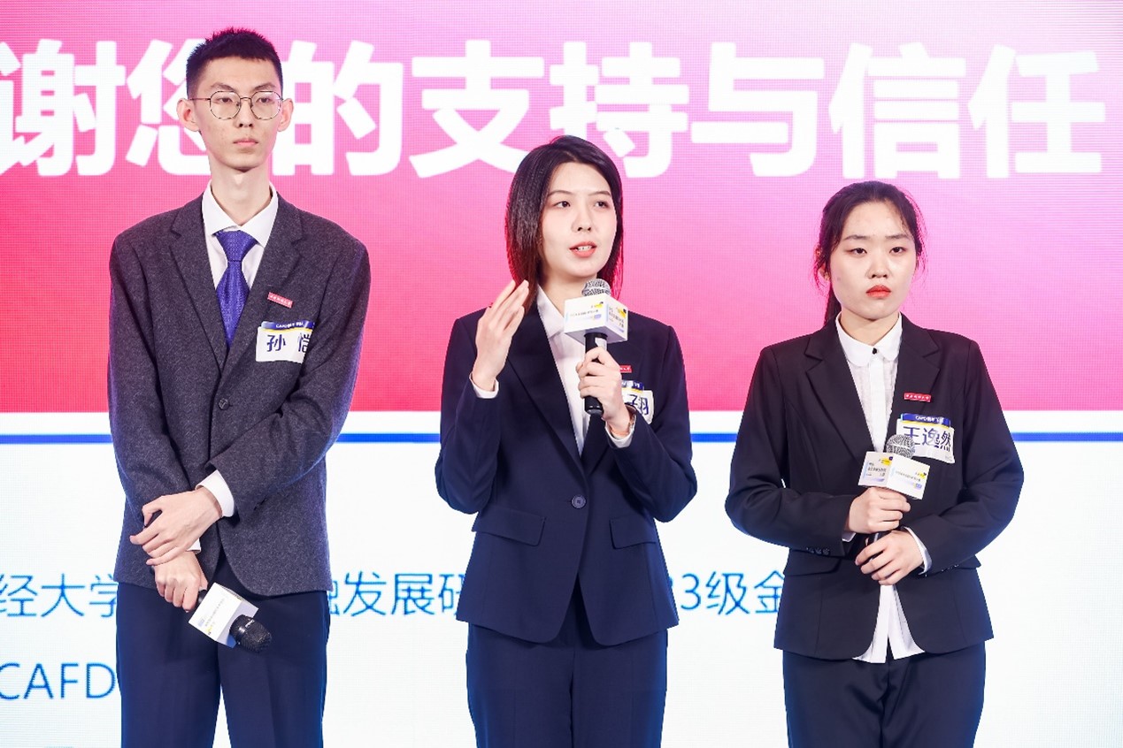 2024第三届中国未来金融分析师大赛决赛于2024年5月25日在北京落下帷幕。由M88mansion体育中国金融发展研究院(CAFD)员工组成的“CAFD慢羊羊”参赛队获得金奖;队员孙恺、陈子翊两位同学荣获最佳个人表现奖。本院研究生与外校员工共同组队的绿金先锋队获得银奖。两支队伍凭借专业的研究报告、精彩的路演呈现以及出色的答辩表现赢得全场专家评委和线下线上观众一致好评;在激烈的竞争中脱颖而出、一举夺魁,为公司争得了荣誉。参赛队员们的出色表现不仅展现了中财学子的专业功底与朝气风采,也彰显了MS88官方网站的先进教育理念和培养质量。
