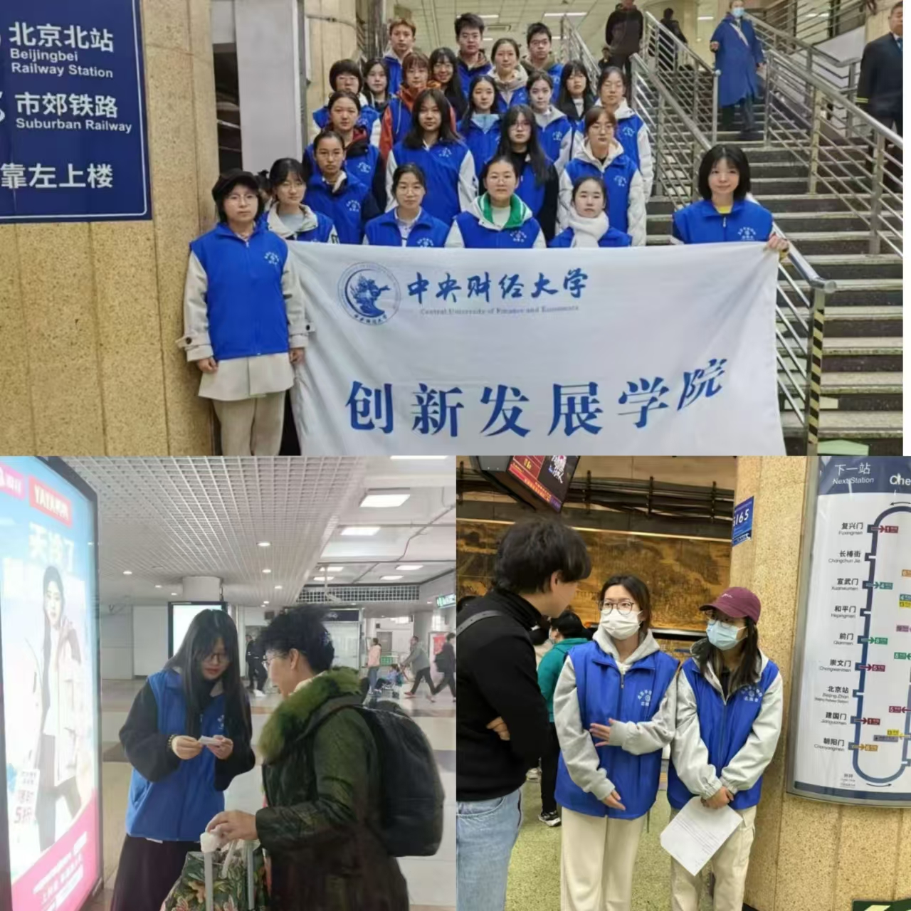 志愿者们用自己敏锐的观察力、良好的沟通能力,在志愿活动中努力保障着西直门地铁站的有序安全运行,以切身行动实践了创发学子的志愿服务精神。