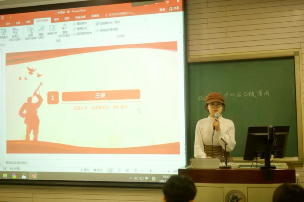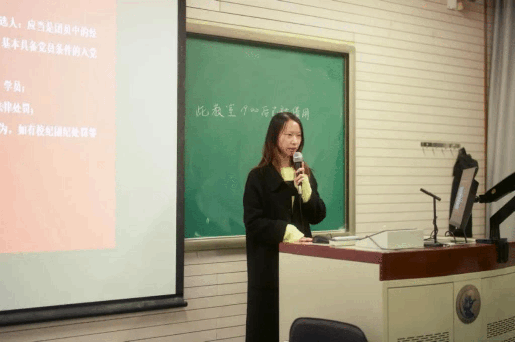 “芮+”导师孙昕仪围绕推优入党流程、团内信息统计等工作进行了讲解,为团支部团务工作的规范开展提供了理论保障。最后,她鼓励团员们积极向党组织靠拢,提高理论素养,用实际行动为中国式现代化贡献青春力量。
