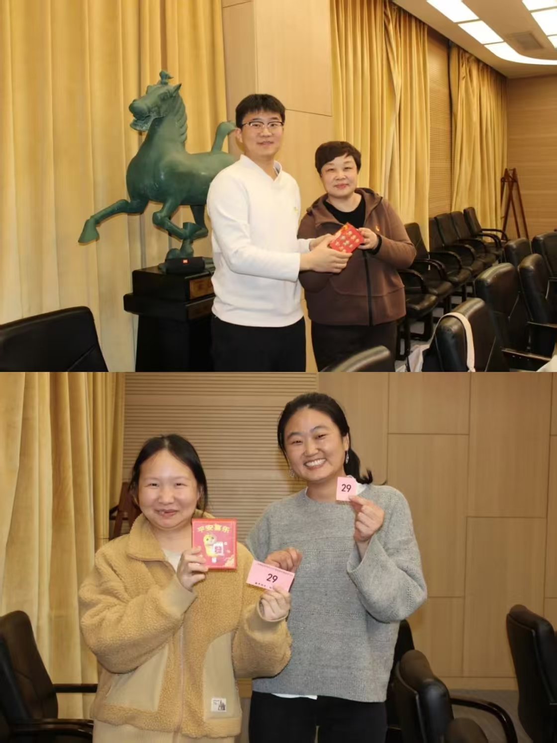 茶话会上,留校员工代表依次做了自我介绍,交流了留校安排、寒假规划和学习生活情况。与会师生围绕职业发展、学业成长、学术科研等话题展开了热烈交流,温馨愉快的氛围洋溢着整个会议室。活动中,还穿插了“击鼓传花”游戏和“幸运抽奖”,师生们极参与,现场气氛热烈。