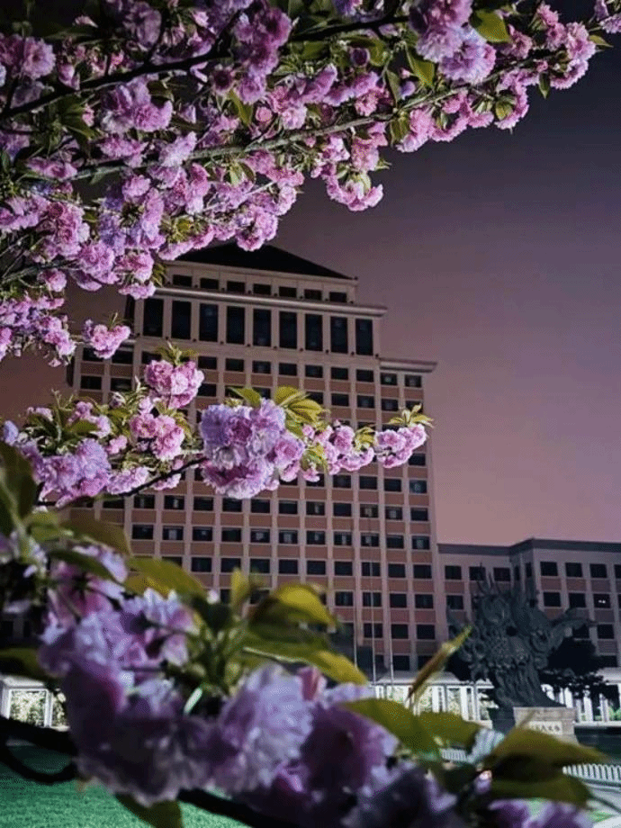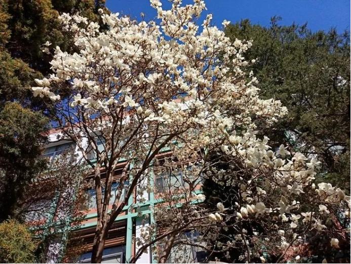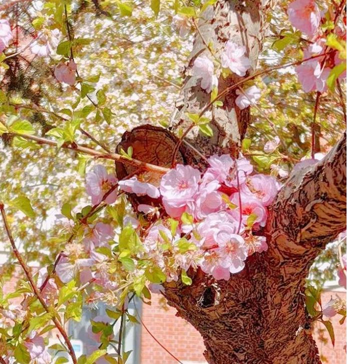 “在校园的一隅,繁花满枝,这是春天写给青春的诗。”