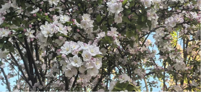 “繁枝堆雪,心向暖阳,惜取眼前春。”