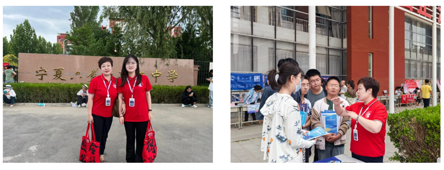 在银川市第一中学、银川市第二中学、银川市第九中学、银川唐徕回民中学、吴忠中学、中卫中学、育才中学、六盘山高级中学、固原市第一中学、石嘴山第三中学,宁夏招生组与广大家长和考生展开了面对面的深入沟通,深入解读了公司概况、招生章程、专业布局、录取准则等核心内容,为考生及家长在志愿填报和专业选择方面提供了专业的指导与建议。