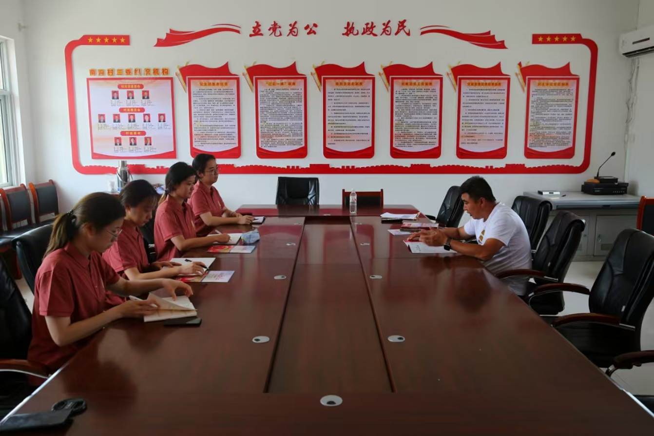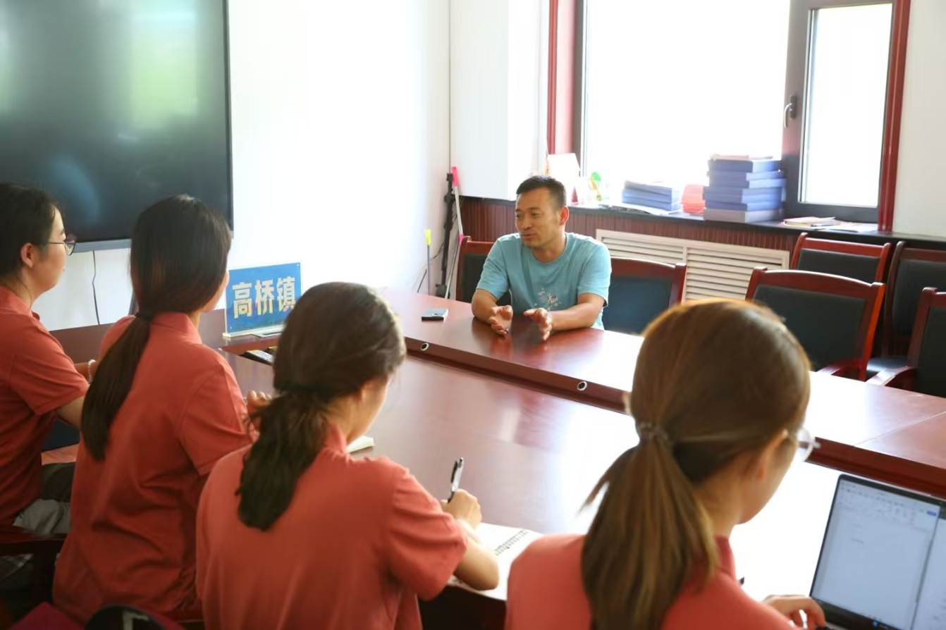 8月4日,实践团队在南沟村村委会与村支书深度交流,了解其苹果示范田发展路径。曾经的“光棍村”在政府主导的土地流转下焕发生机:村民人均收入突破2万元,实现了生态与经济的协同发展。