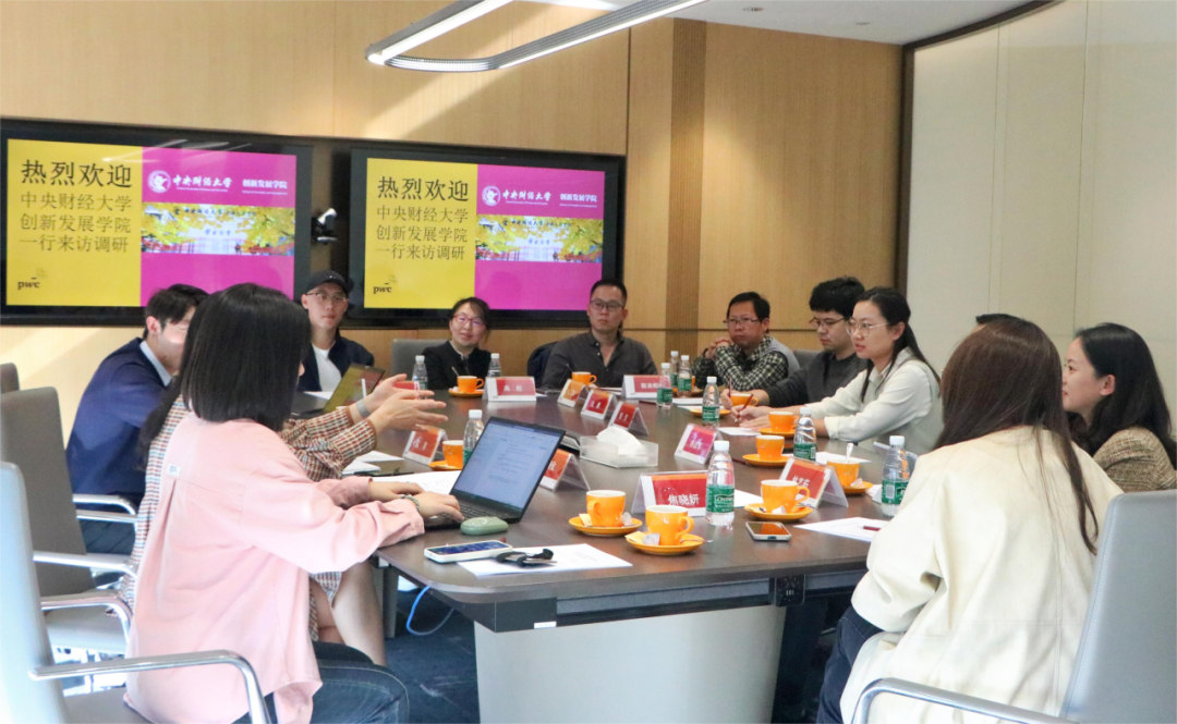 为积极响应教育部、公司关于高校就业工作的部署,深入开展“访企拓岗促就业”行动,2023年10月13日下午,创新发展公司党委常务副书记李汉军、副书记林艺茹,公司专任教师班主任高松、甄芳、张潇、郭来特,辅导员王文忠、焦晓妍、李雪婷,及博士研究生李家辉一行赴普华永道座谈交流。普华永道中国政府事务部合伙人、北京党委副书记冀菲,普华永道中国政府事务经理王梓昱、普华永道中国政府事务咨询顾问周婉仪出席交流活动。