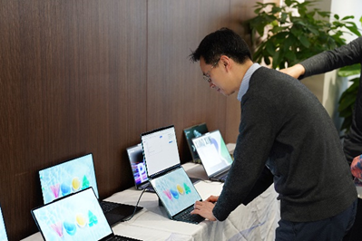 师生结束参观后进行了短暂的茶歇,期间积极地与联想产品的开发者与研发者畅谈,咨询相关电子产品信息以及体验产品性能。工作人员的耐心讲解让同学们收获颇丰。