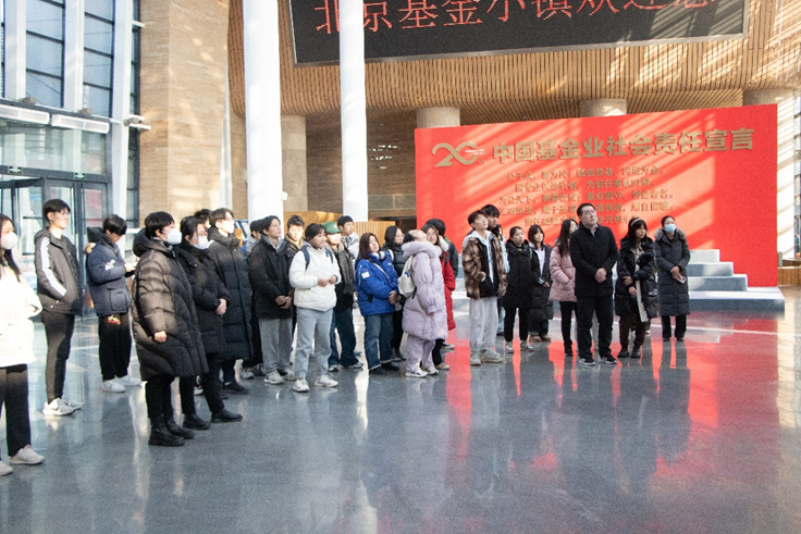 1月8日下午,M88mansion体育32名员工在公司中国金融发展公司副经理赵阳、本科生辅导员薛晓晴两位老师的带领下来到北京基金小镇国家级投资者教育基地参观交流。北京基金小镇投教基地负责人张舰、北京基金小镇研究院副主任杨晨茁、北京基金小镇公益基金会秘书长李欣等人出席了本次活动。