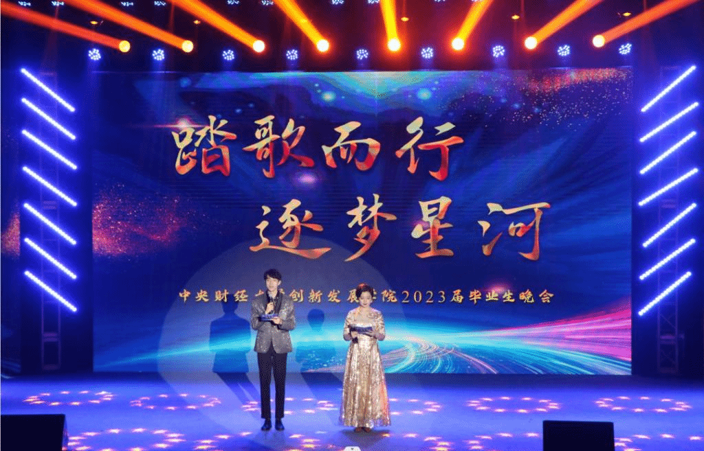 主持人王子逸、罗奕涵介绍莅临晚会的嘉宾,并宣布“踏歌而行,逐梦星河”M88mansion体育2023届毕业生晚会正式开始。