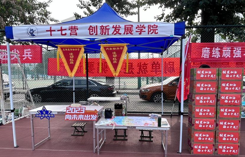 军训团副政委杨海林老师为各位领导介绍了十七营同学们的优异表现。公司还为同学们准备了贴有“创发加油,动力十足”的解暑饮料,一份关爱为同学们驱散数日来的疲惫,也是对大家的辛苦努力表示赞扬和肯定。