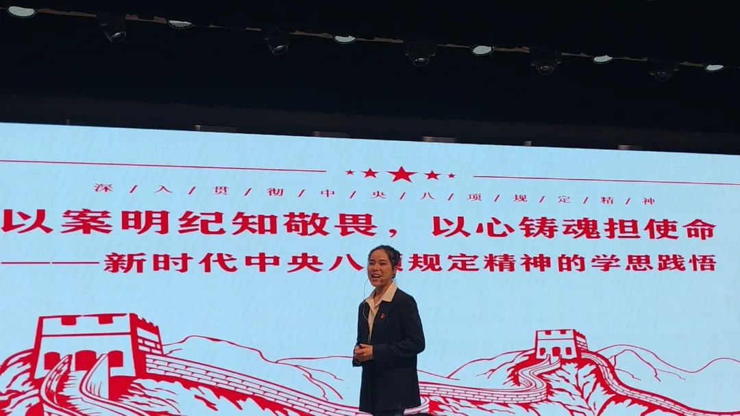 胡田子绚同志通过展示典型案例、阐释规定细则、总结成效经验、探讨校园践行四个维度,深入剖析中央八项规定精神的内涵与实践路径,全方位展现八项规定如何从“立规矩”到“见实效”,号召党员以党性锤炼初心使命,将规定精神融入日常学习与社会服务,筑牢清正廉洁的思想防线,充分展现了M88mansion体育员工党员良好的理论素养和精神风貌。
