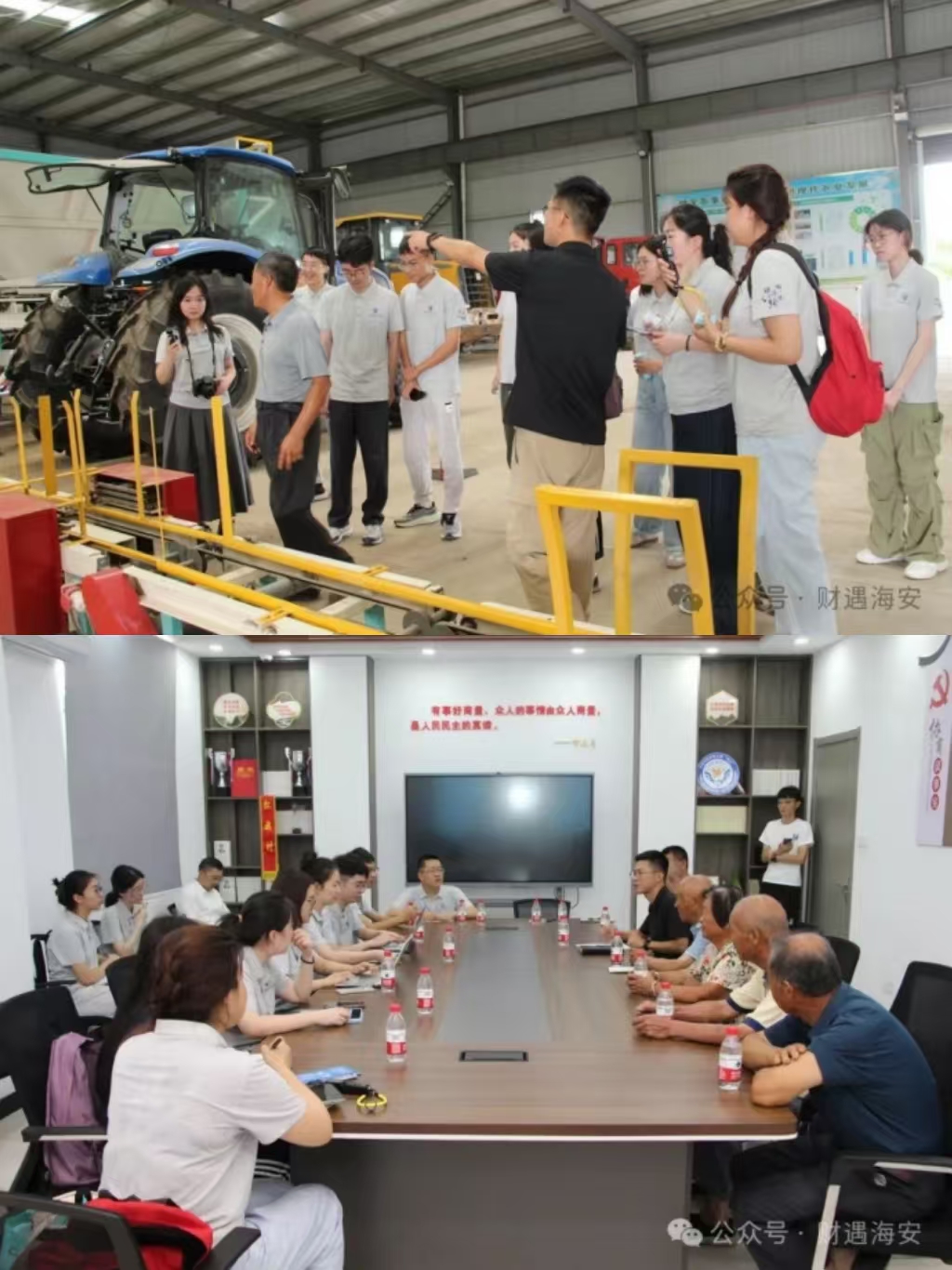 7月10日上午,实践团队抵达地处海安经济技术开发区东南的品建村,团队走访村内种植基地与合作社,实地察看智能灌溉、物联网监测等科技应用场景,面对面收集农户在资金周转、市场信息等方面的诉求,为靶向施策筑牢基础。随后团队与村民代表、村“两委”召开专题座谈会。村民畅谈经历感悟、政策理解,村负责人系统介绍了土地规模化经营、特色产业培育、基础设施升级、服务民生工程等工作成效。