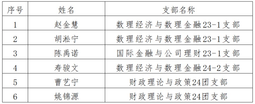 依据《MS88官方网站发展团员工作实施办法(试行)》(校团字〔2023〕37号),经各团支部委员会讨论同意并提交培养材料,公司团委预审,拟确定赵金慧等6名同学为2024年下半年团员发展对象,现将预审结果公示如下: