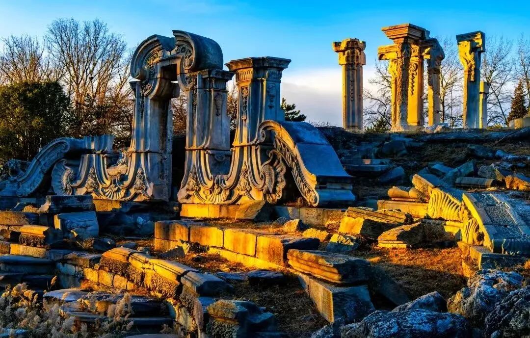漫步园中,逐渐走进历史,迈入圆明园遗址核心史迹。那些镌刻着华彩花纹的大理石柱默默矗立,折射出历史的沧海桑田。那些黄瓦朱墙在夕阳照耀下愈发似琳琅幻境,辉映着文化的赓续不断。感悟历史沉淀,体会文化传承,使心灵净化,令灵魂升华。