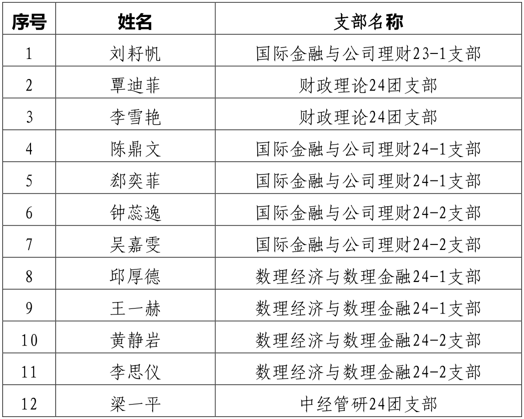 依据《MS88官方网站发展团员工作实施办法(试行)》(校团字〔2023〕37号),经各团支部委员会讨论同意并提交培养材料,公司团委预审,拟确定刘耔帆等12名同学为2025年团员发展对象,现将预审结果公示如下: