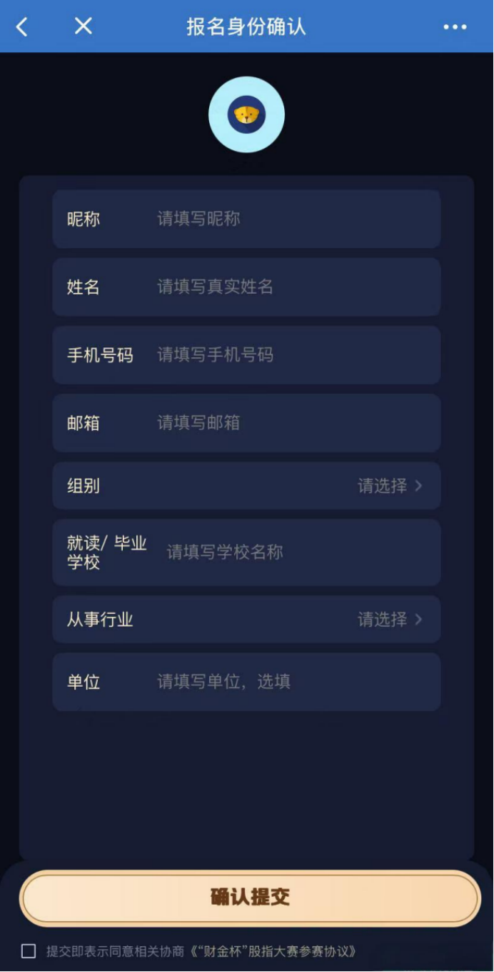 完成注册流程后,系统将自动为参赛者分配一个虚拟账户。