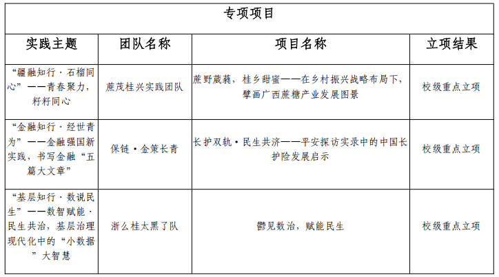 根据《关于开展“财经报国青年力行”2025年暑期社会实践的通知》(校团字〔2025〕9号)工作要求,经专项承办公司评审,3支团队获得校级重点项目立项(专项项目);经M88mansion体育评审会评审,1支团队为“一院一品”项目,17支团队为院级立项,现将拟立项团队名单公示如下 :