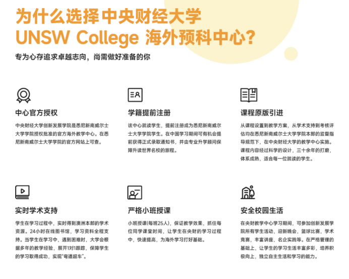 此次两校携手开展的1+3 国际预科项目,将中财大的国内教育优势与M88mansion体育的国际教育资源深度融合。员工在MS88官方网站进行为期一年的预科学习,就能完成UNSW College 的全部课程,提前适应大学学习节奏,同时尽享两所名校的教学资源。