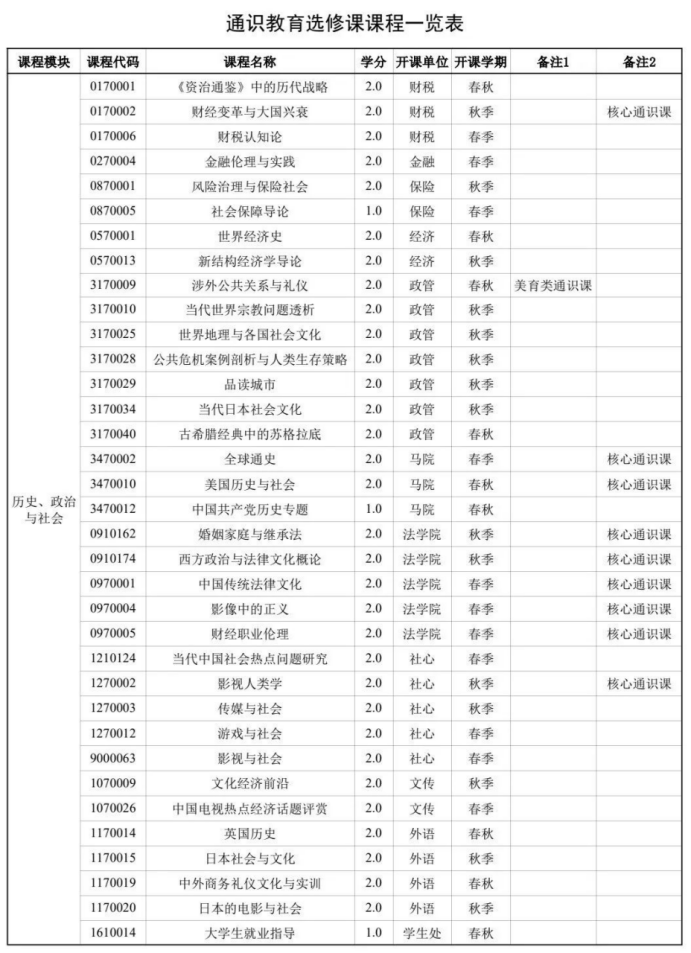 通识课是一类在大二及以上年级开设的、可以根据兴趣自主选择的课程,共分为六个不同类别:“语言、文学与艺术”模块、“历史、政治与社会”模块、“生命、心理与哲学”模块、“自然、科技与环境”模块、“生产、生活与服务”模块、“创新、创意与创业”模块。通识课可以聆听来自不同公司教授的精彩讲解以拓宽眼界,了解更多的前沿知识。