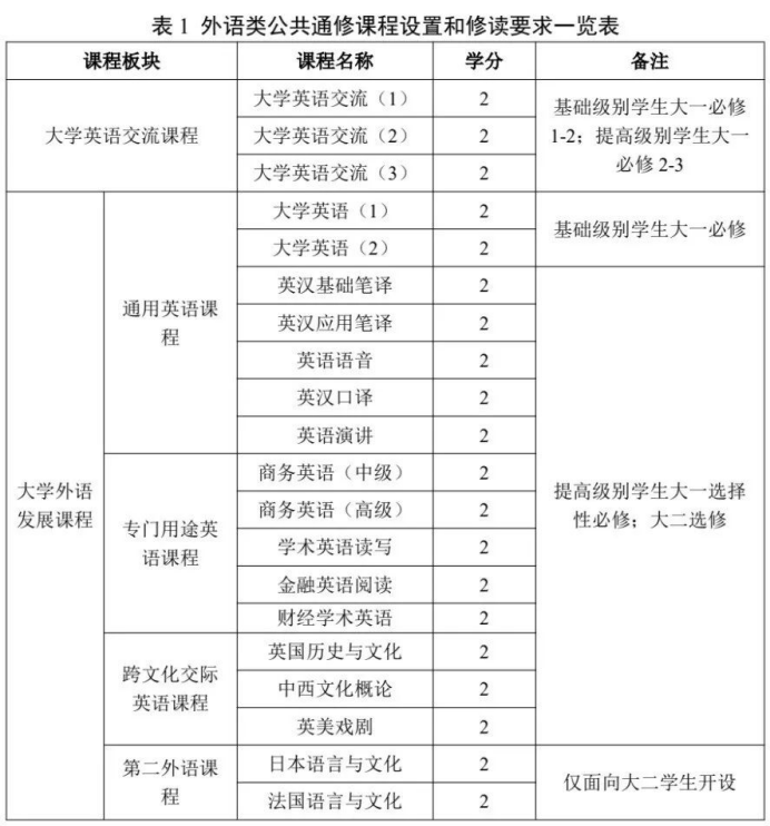 下图为2024级培养方案中外语必修课程,供参考,大家记得以25级最新的培养方案内容为准。