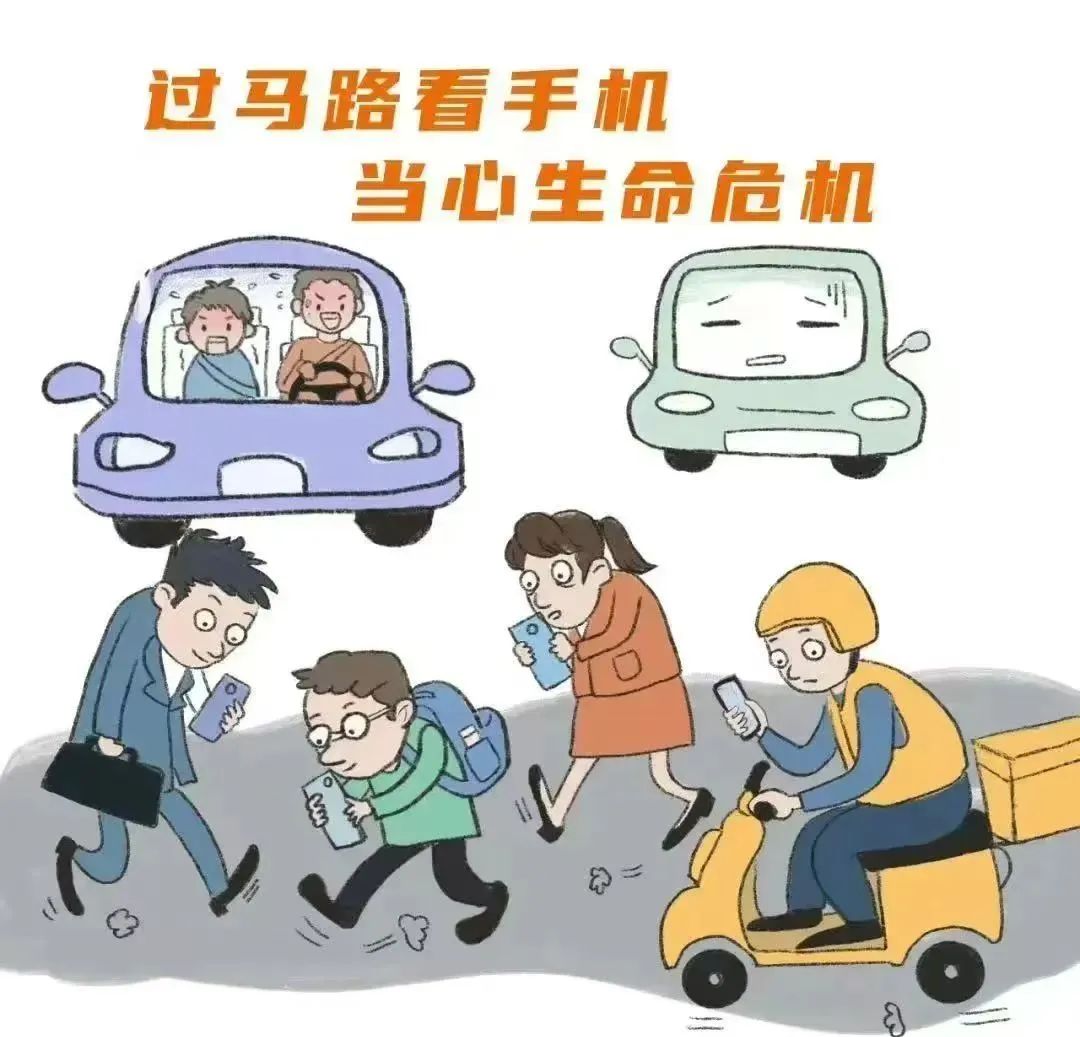 3.道路千万条,安全第一条。行车不规范,亲人两行泪。市区内车流量大,行人多,道路复杂,遵守交通安全规则要记牢。过马路时,做到“一停二看三通过”,必须走人行横道。不做“低头族”,放下手机既是为自己负责,也是为他人负责。