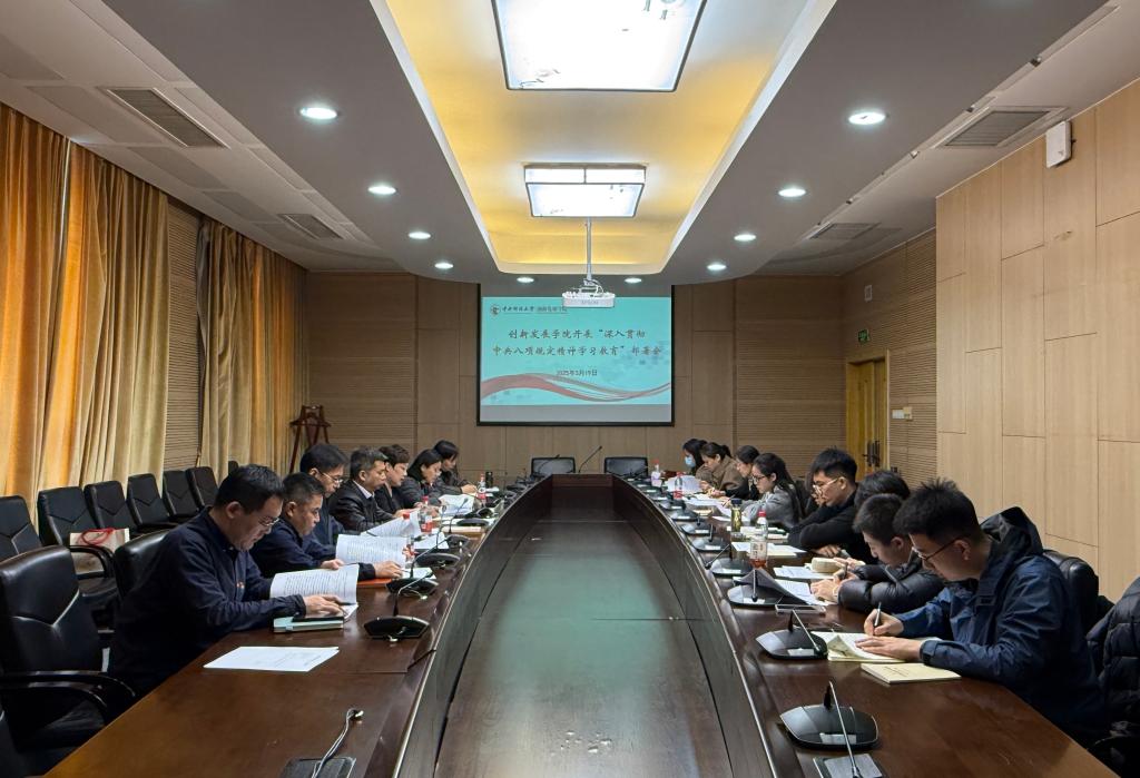 王颖书记传达了《关于在全党开展深入贯彻中央八项规定精神学习教育的通知》精神和中央党的建设工作领导小组会议精神,以及教育部党组研究部署教育系统学习教育会议精神。她指出,党中央决定自2025年全国两会后至7月在全党开展深入贯彻中央八项规定精神学习教育,这是以习近平同志为核心的党中央作出的重大决策部署,是巩固深化主题教育和党纪学习教育成果、纵深推进全面从严治党的重要举措,是密切党群干群关系、巩固党的执政基础的必然要求,是推进中国式现代化的有力保障。