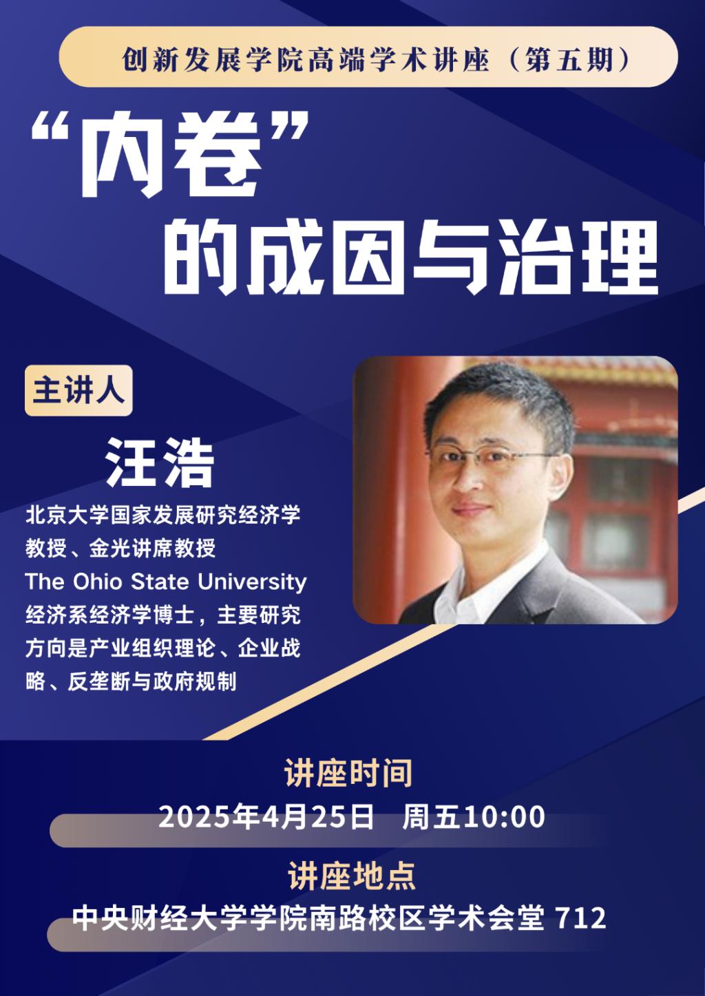 M88mansion体育高端学术讲座(第五期)| 汪浩:“内卷”的成因与治理 讲座主题“内卷”的成因与治理主讲嘉宾北京大学国家发展研究院 汪浩 教授讲座时间2025年4月25日 周五10:00讲座地点MS88官方网站公司南路校区学术会堂712主持人M88mansion体育 尹训东 副教授嘉宾简介汪浩,北京大学国家发展研究院经济学教授、金光讲席教授。汪浩教授为The Ohio State University经济系经济学博士,主要研究方向是产业组织理论、企业战略、反垄断与政府规制。讲座内容简介本文探讨我国社会上的过度竞争或“内卷”现...