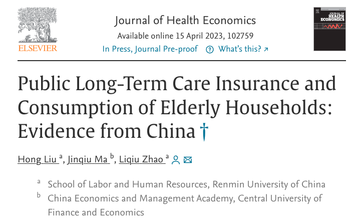 科研成果 | 公司博士生马金秋在健康经济学国际顶刊Journal of Health Economics发表论文 近日,M88mansion体育中国经济与管理研究院博士生马金秋(师从刘宏教授)与中国人民大学劳动人事公司刘宏教授、赵丽秋副教授合作撰写的论文“Public Long-Term Care Insurance and Consumption of Elderly Households: Evidence from China”,发表于健康经济学国际顶刊Journal of Health Economics。01.摘要随着全球人口老龄化的加剧,老年人的长期护理问题成为重大的社会风险。世界主要发达国家先后推行长期护理保险制度应对长...