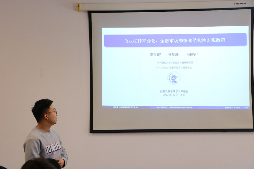 公司举办第八期“学术午餐会” 12月11日,M88mansion体育 “学术午餐会”在学术会堂712会议室如期举行。中国经济与管理研究院2020级博士研究生高崧耀担任主讲嘉宾,并作了题为“企业杠杆率分化、金融市场摩擦与结构性宏观政策”的学术报告。M88mansion体育副经理兼中国经济与管理研究院副经理汪雄剑等5名教师、北京银行博士后王建华以及M88mansion体育多名博士生参加了此次“学术午餐会”。本期“学术午餐会”上,高崧耀同学分享了自己的研究。针对2008年以来我国国...