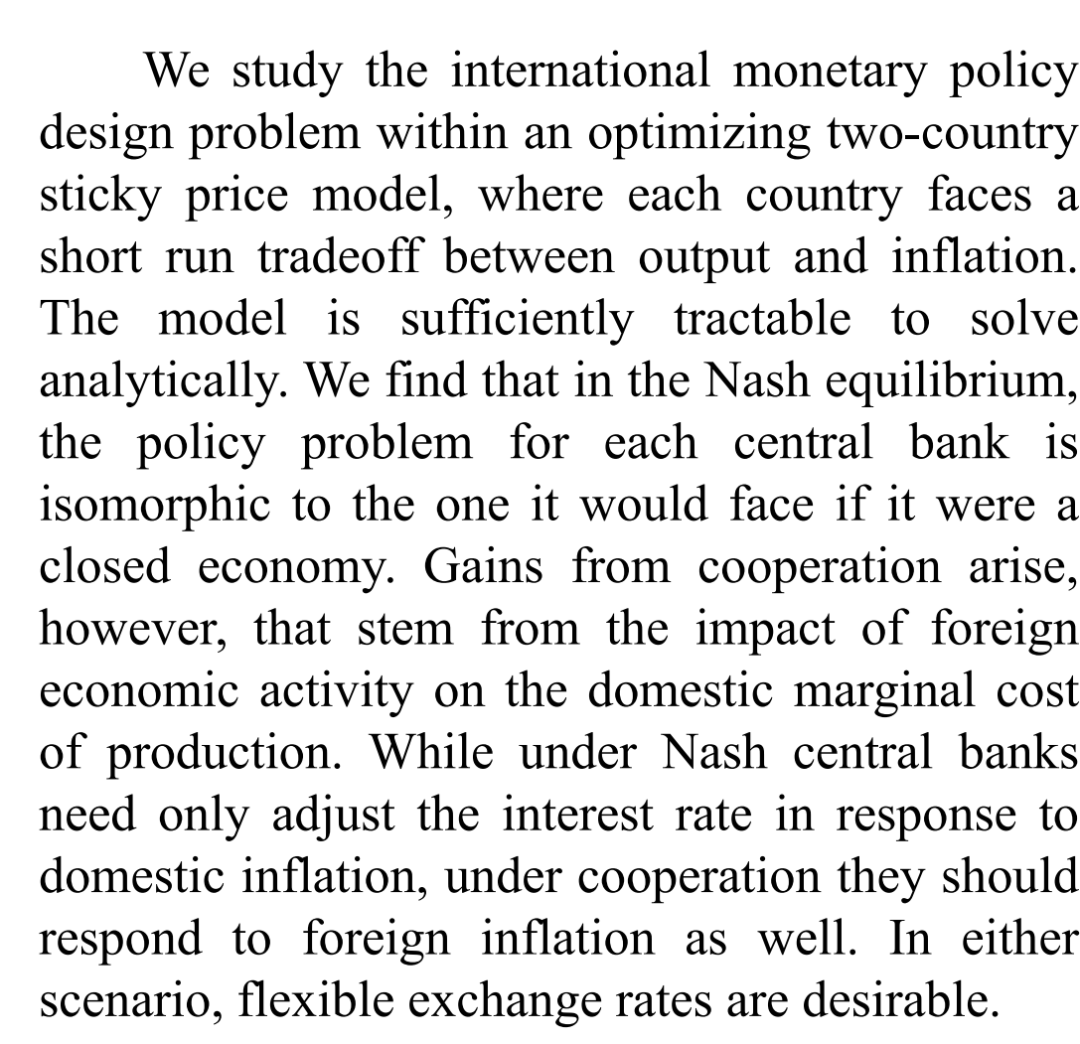 学术沙龙|货币经济讨论班(77期):一个简单的国际货币政策分析框架 分享论文A simple framework for international monetary policy analysis (Journal of Monetary Economics , Richard Clarida, Jordi Galí, Mark Gertler , 2002)分享人王忏(金融公司,副教授)时间2025年3月20日(周四)下午19:00-21:00地点学术会堂712主持人王忏(金融公司)赵军柱(M88mansion体育中国经济与管理研究院)论文摘要活动对象M88mansion体育金融公司公司员工人数规模30人主办单位M88mansion体育中国经济与管理研究...
